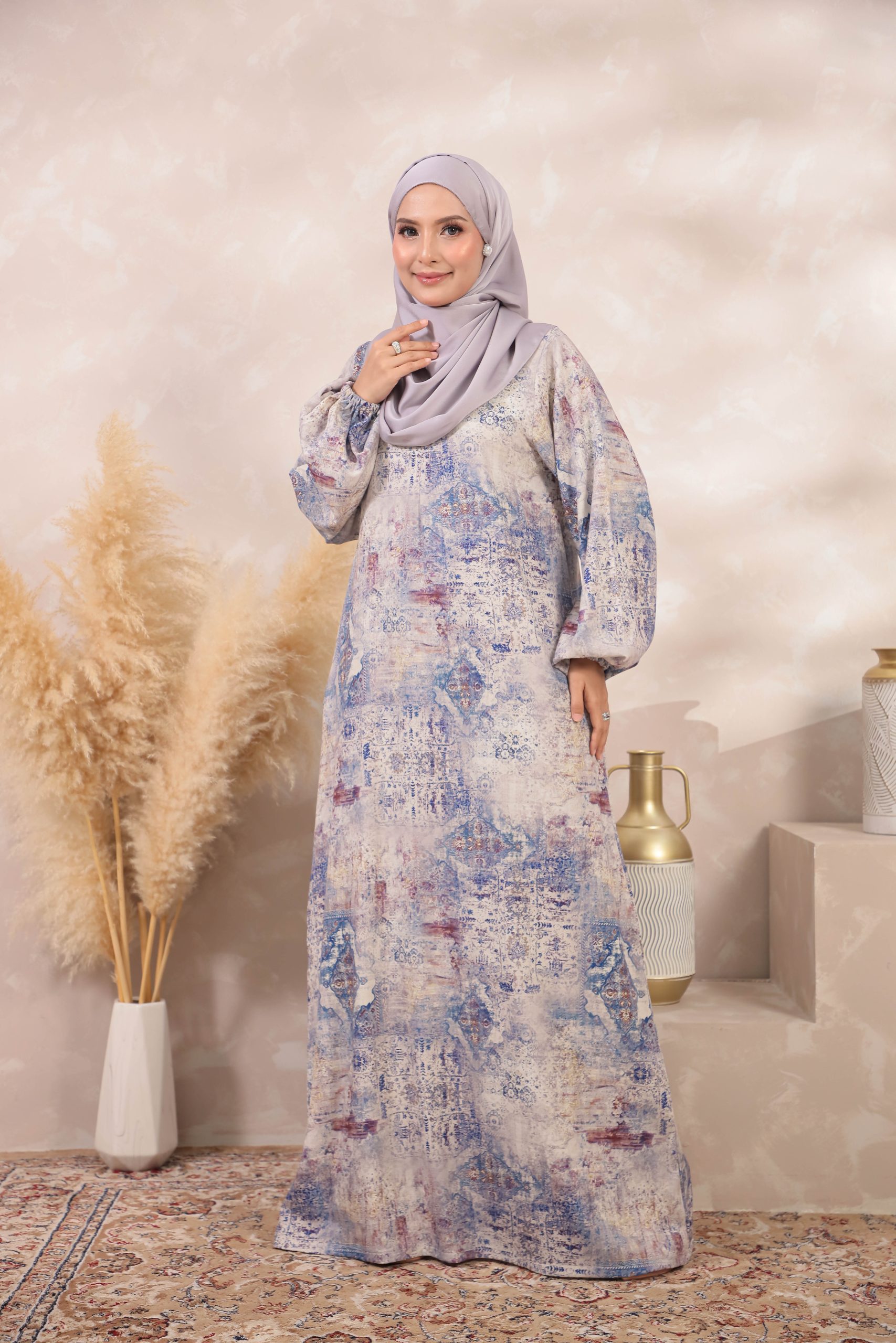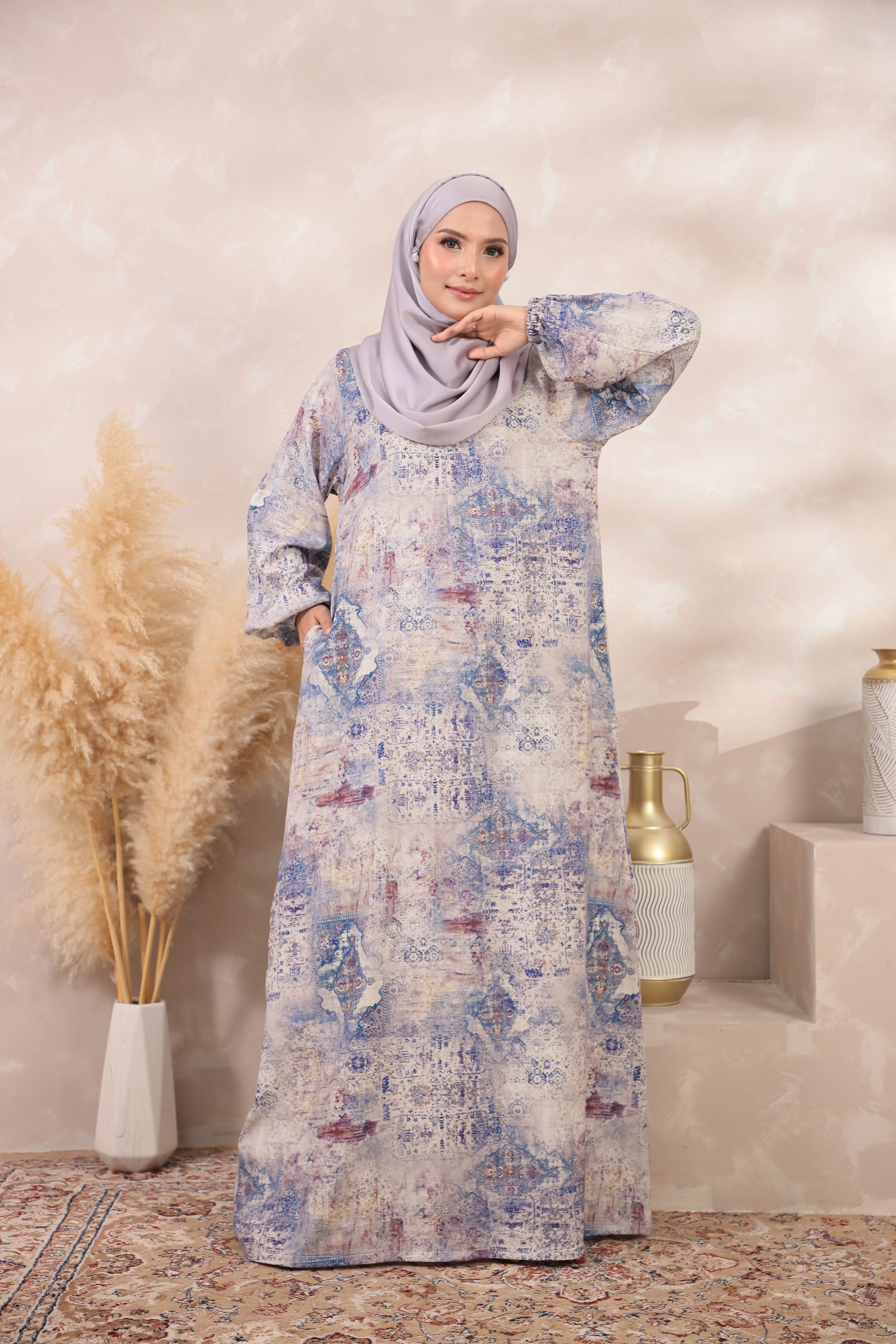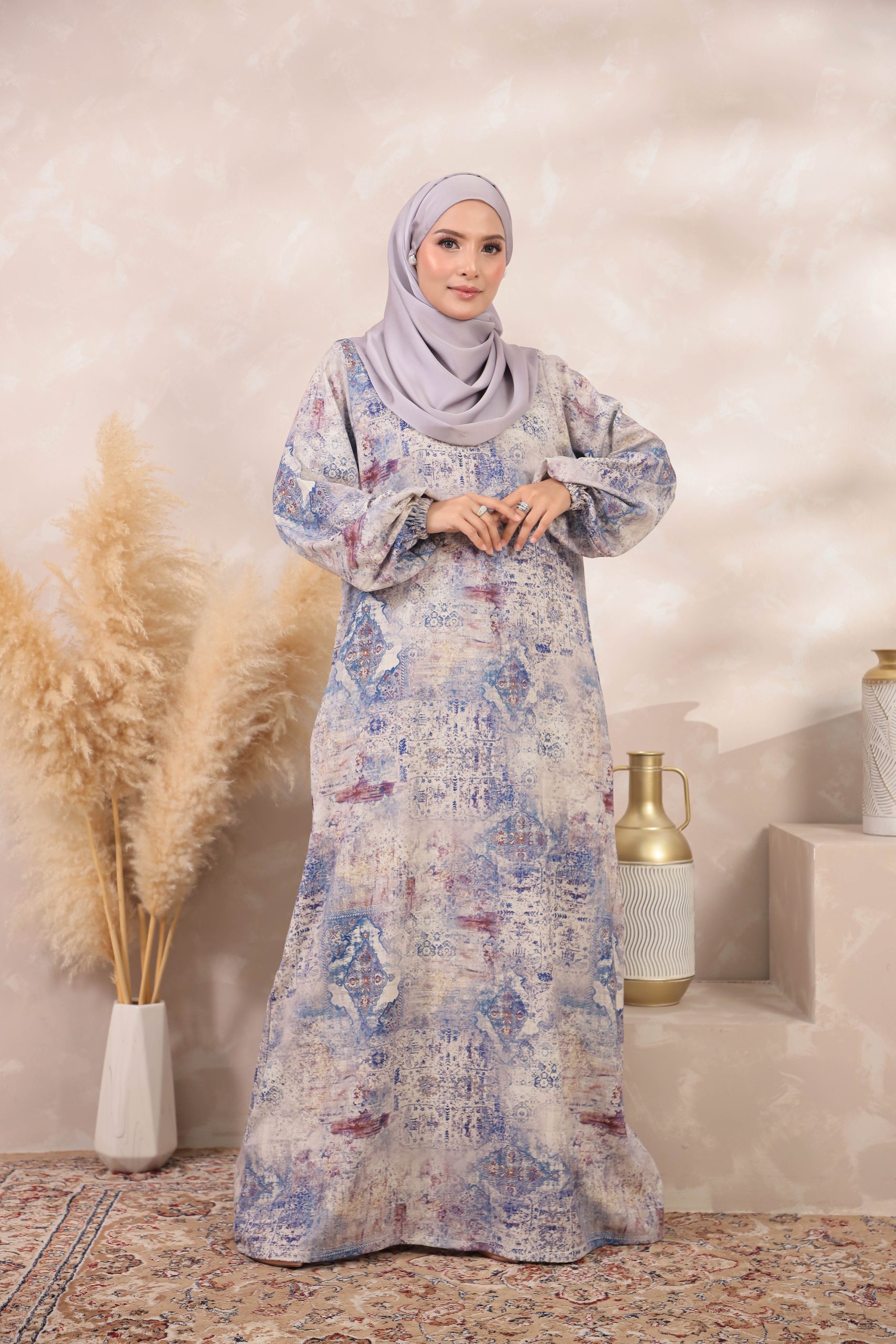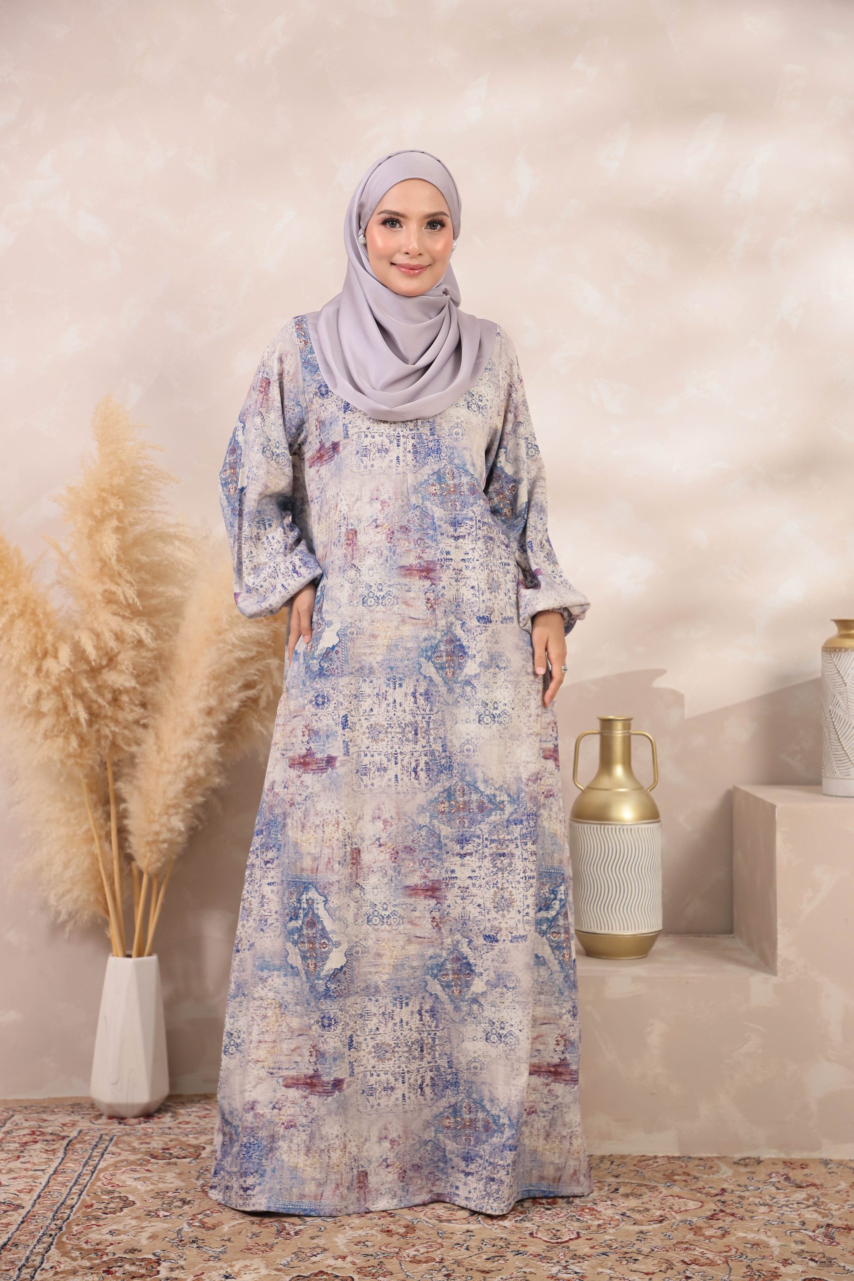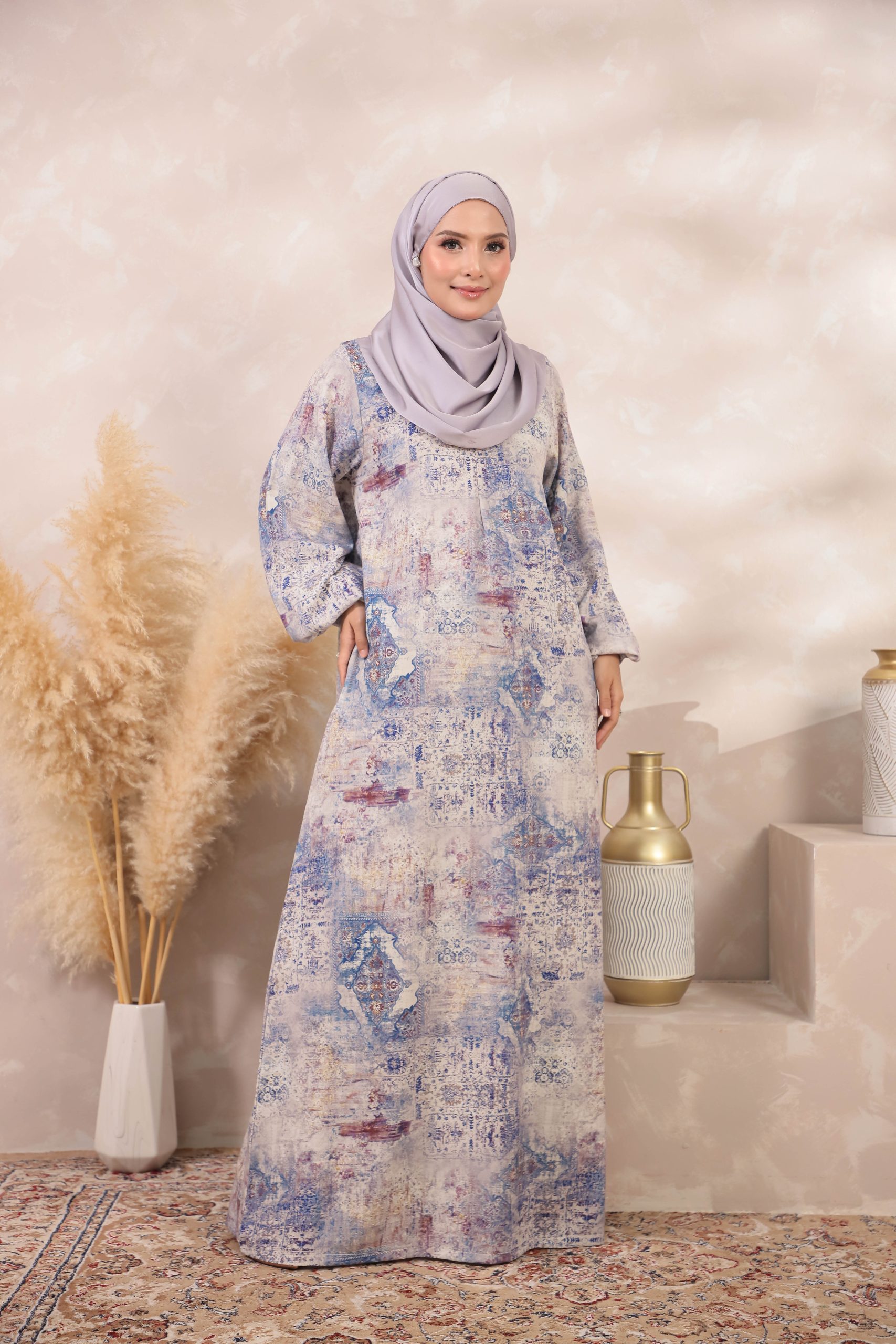 Iressa Arté embodies an artistic, vintage-inspired elegance with a soft contemporary touch. Designed on a muted ivory-beige base, the fabric features an abstract heritage mosaic print in shades of dusty blue, faded indigo, soft plum, and antique taupe, creating a refined painterly effect.